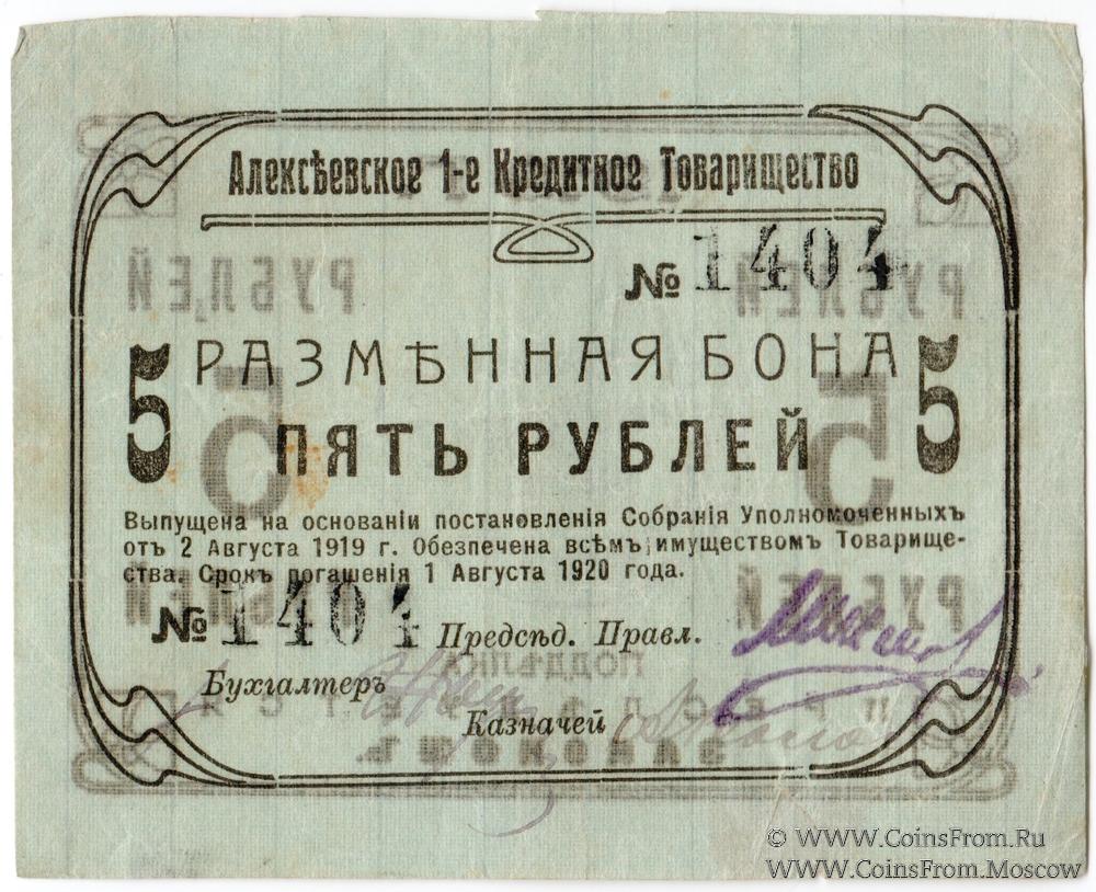 Срок погашения 1 августа 1920 г. Алексеевское Первое Кредитное Товарищество.