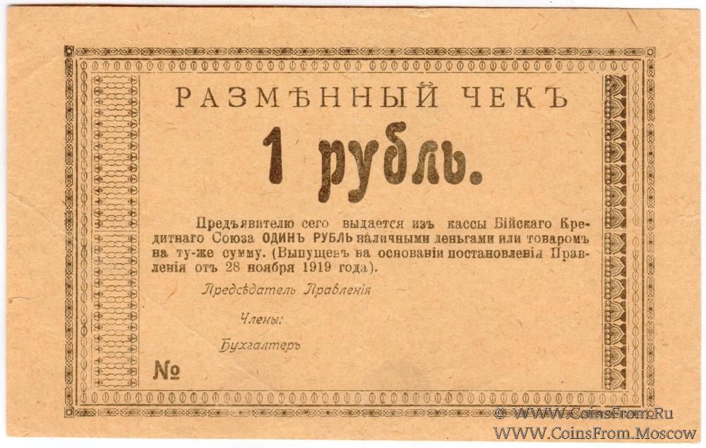 На реверсе печать П.К.С.С., рукописные заметки, номер (карандашом) и штамп "РАСЧЕТЪ ПРОИЗВЕЛЪ". Без перфорации. Бийский Кредитный союз.