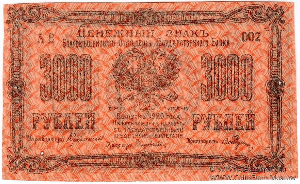 Денежный знак 1920 г. Серия АВ. Благовещенское Отделение Государственного Банка.