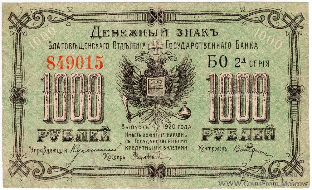 Денежный знак 1920 г. Номер красный. 2-я серия. Благовещенское Отделение Государственного Банка.