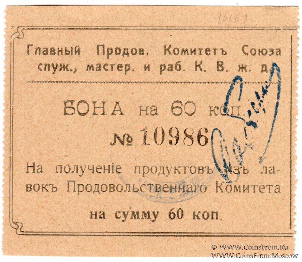 Бона без даты. Главный Продовольственный Комитет Союза Служащих, Мастеровых и Рабочих Китайской Восточной Железной Дороги.