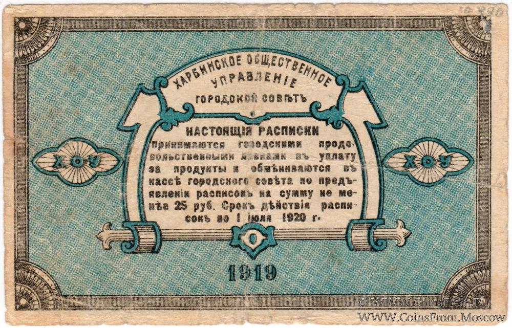 Расписка городского совета 1919 г. Харбинское Общественное Управление.