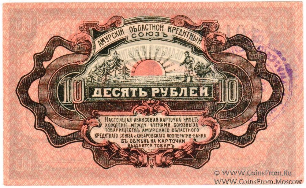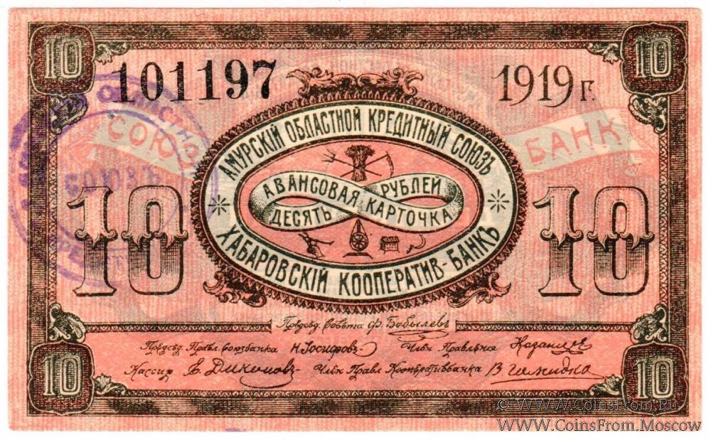Авансовая Карточка 1919 г. Печать Амурского Областного Кредитного Союза на аверсе. Хабаровский Кооператив-Банк.