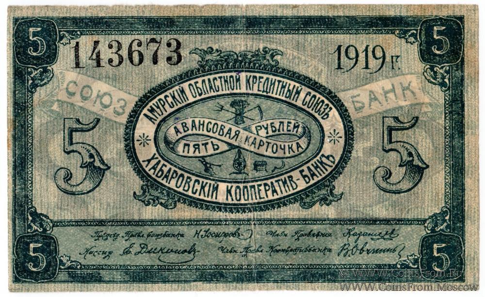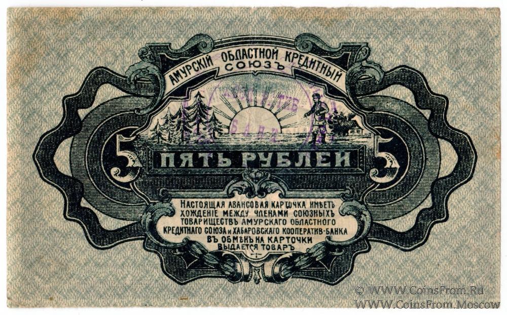 Авансовая Карточка 1919 г. Печать Хабаровского Кооператив-Банка на реверсе. Амурский Областной Кредитный Союз.