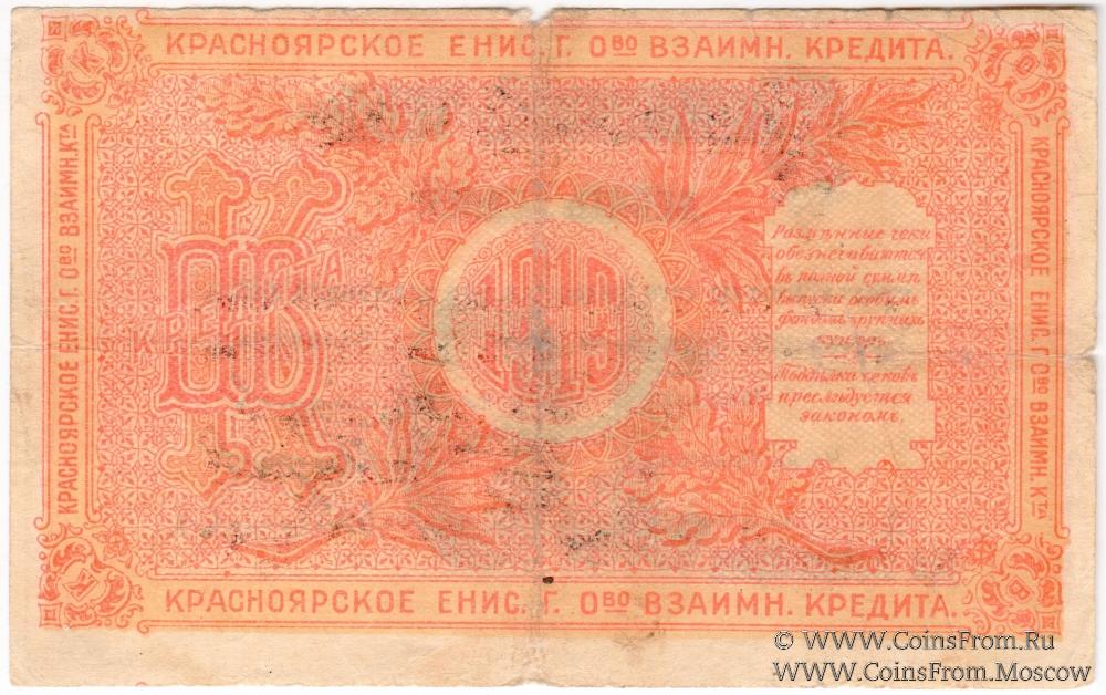 Разменный чек 1919 г. 2-й выпуск. Серия А. Красноярское Общество Взаимного Кредита.