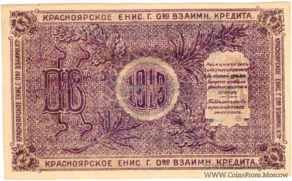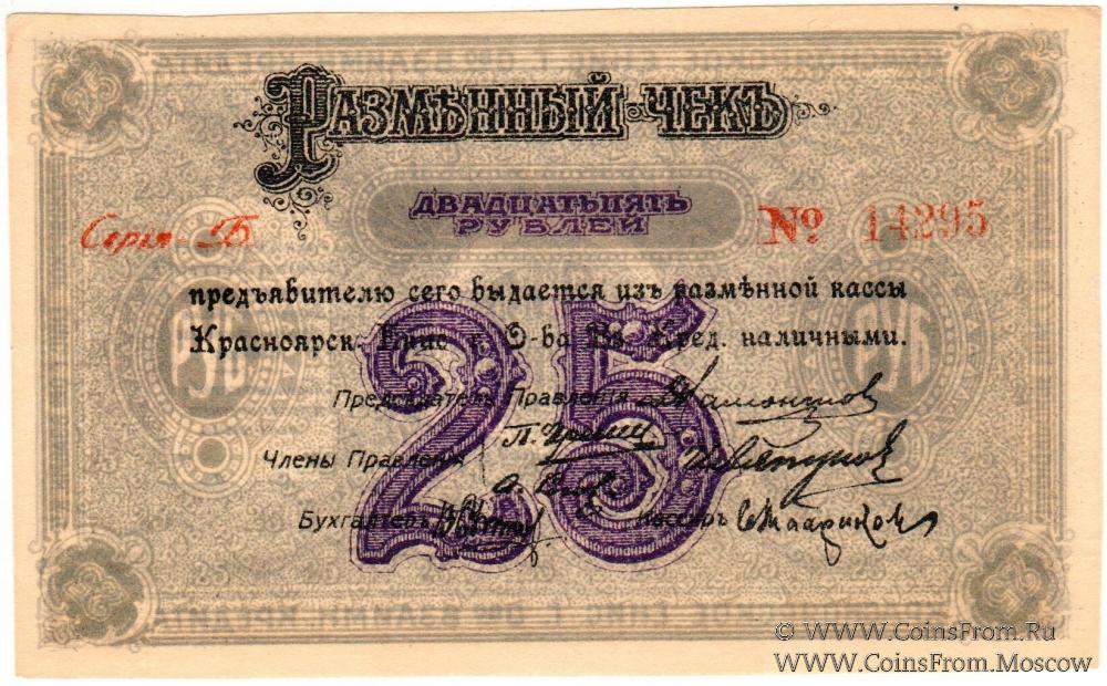 Серия Б. Разменный чек 1919 г. 3-й выпуск. Красноярское Общество Взаимного Кредита.