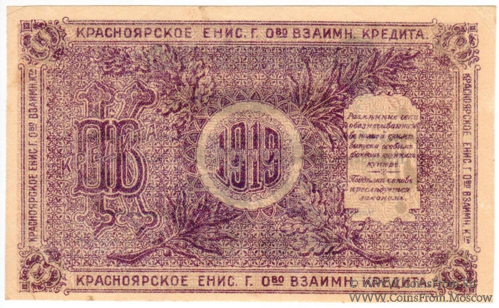 Серия Г. Разменный чек 1919 г. 3-й выпуск. Красноярское Общество Взаимного Кредита.