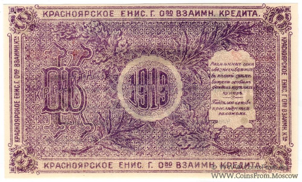 Разменный чек 1919 г. 3-й выпуск. Серия В. Водяной знак. Красноярское Общество Взаимного Кредита.
