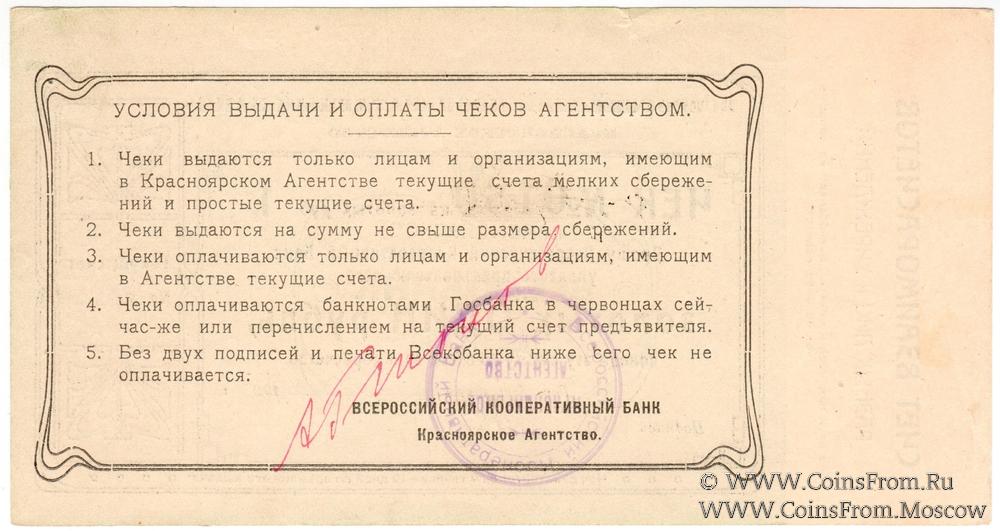Печать круглая: "КРАСНОЯРСКОЕ АГЕНТСТВО." (по центру в две строки) / "* Всероссийский Кооперативный Банк. *" (по кругу)