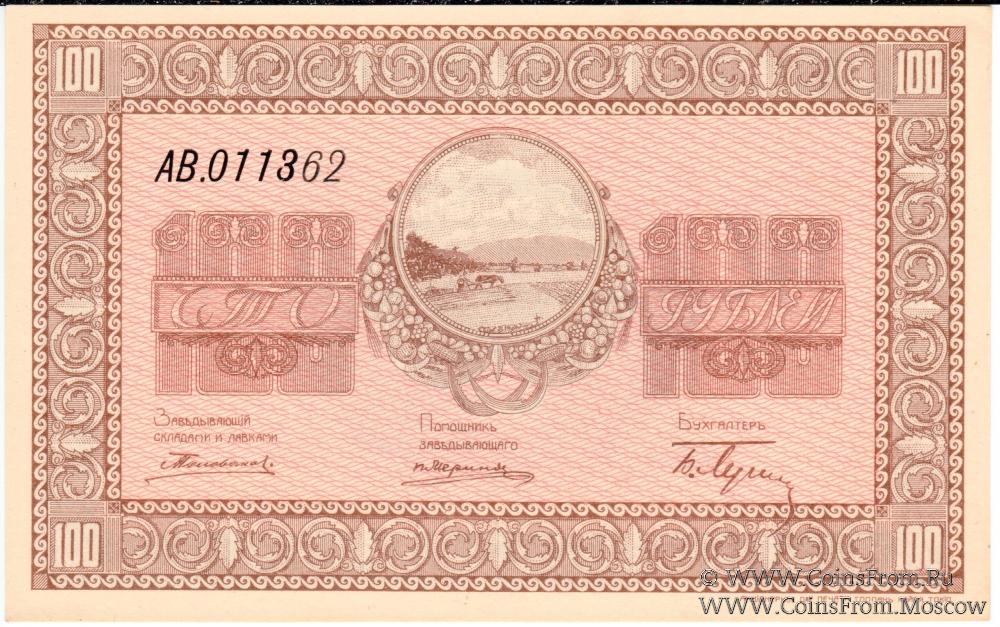 100 рублей 1919 г. (Никольск-Уссурийск)