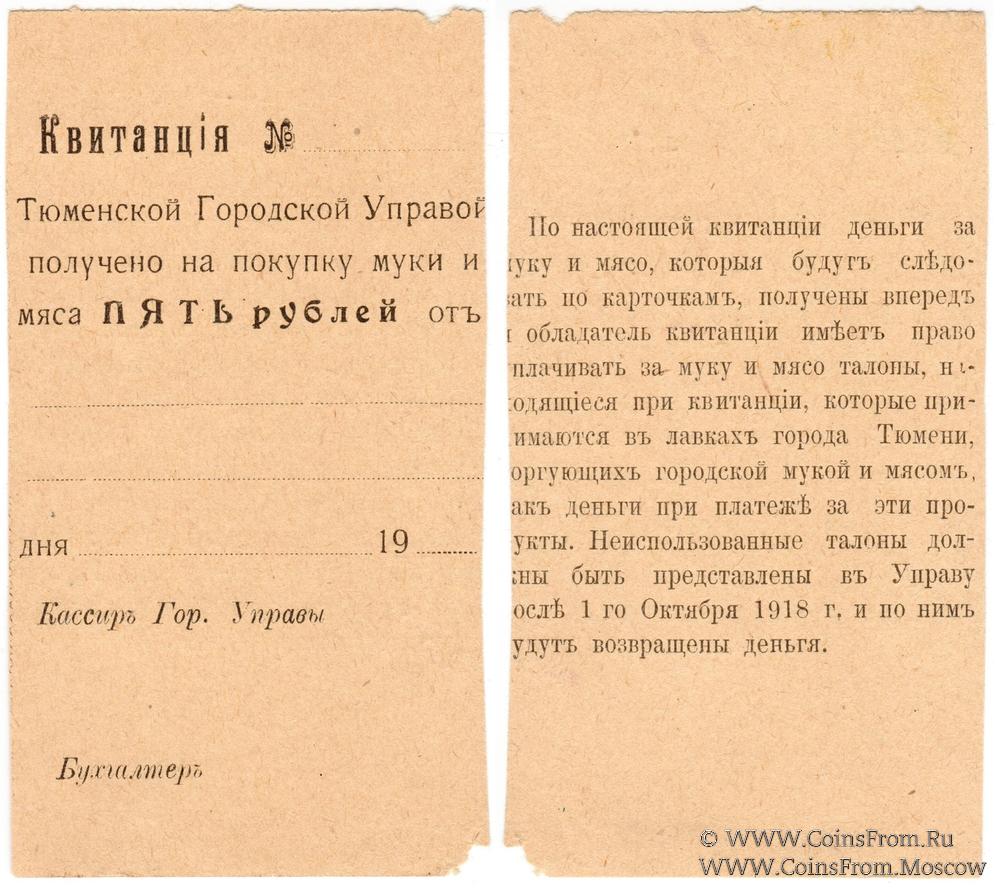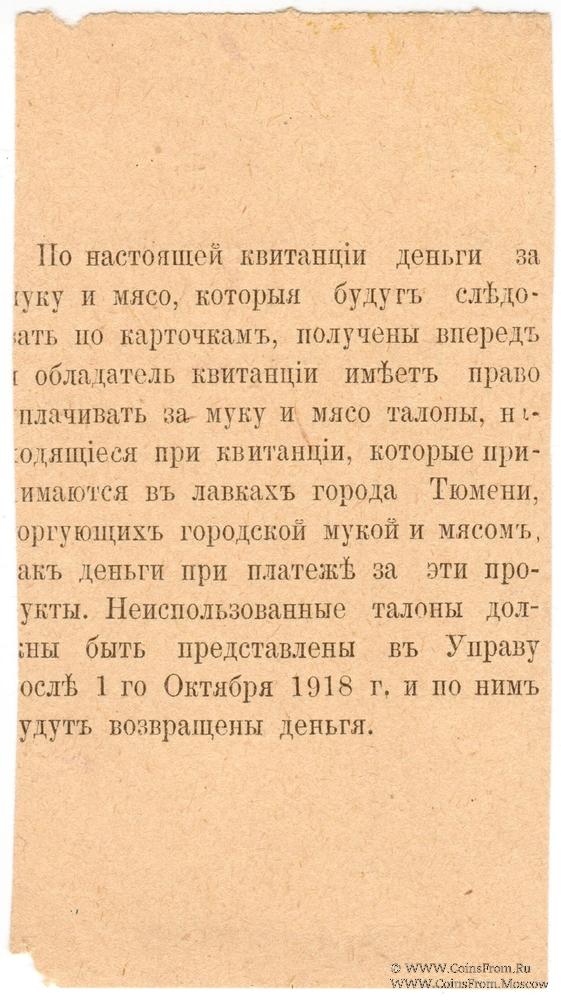 Квитанция без даты (1918 г.). Тюменская Городская Управа.