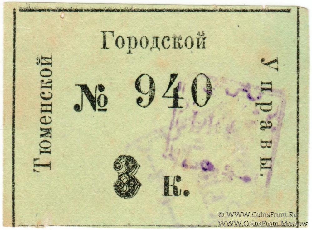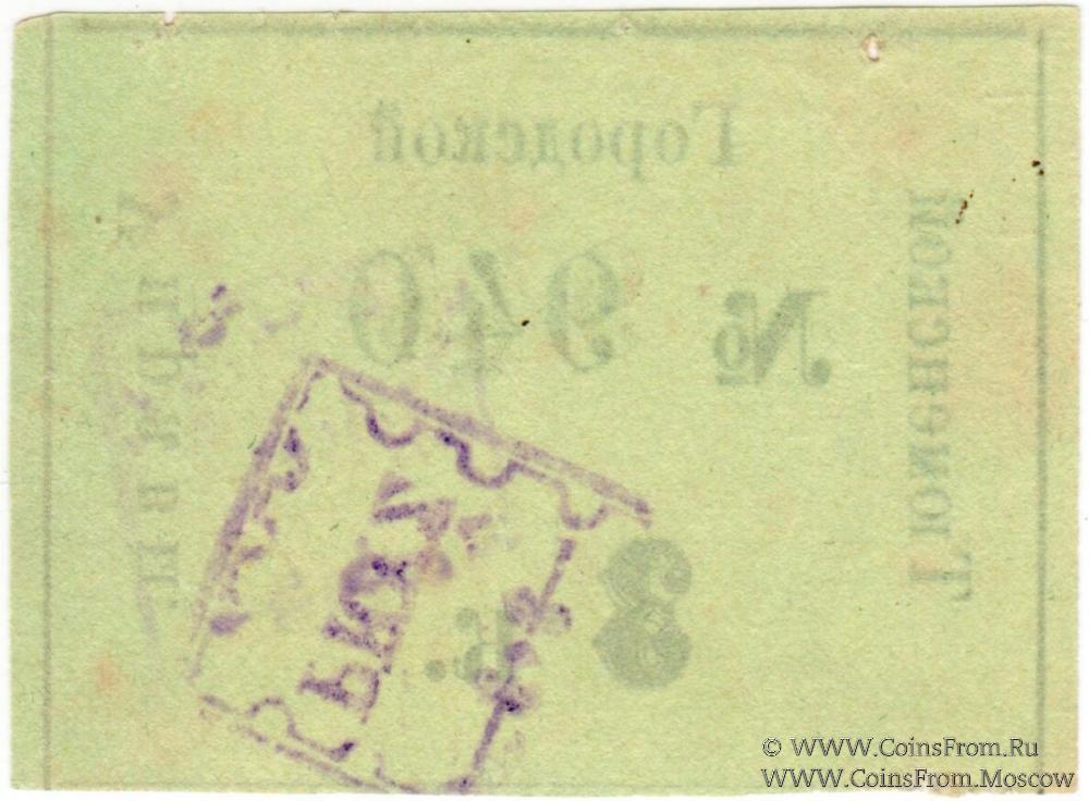 Без даты (1918 г.). Цифры номинала фигурные. Штамп (неразборчиво). Тюменская Городская Управа.