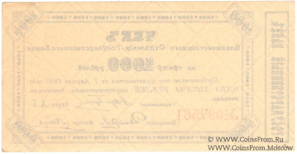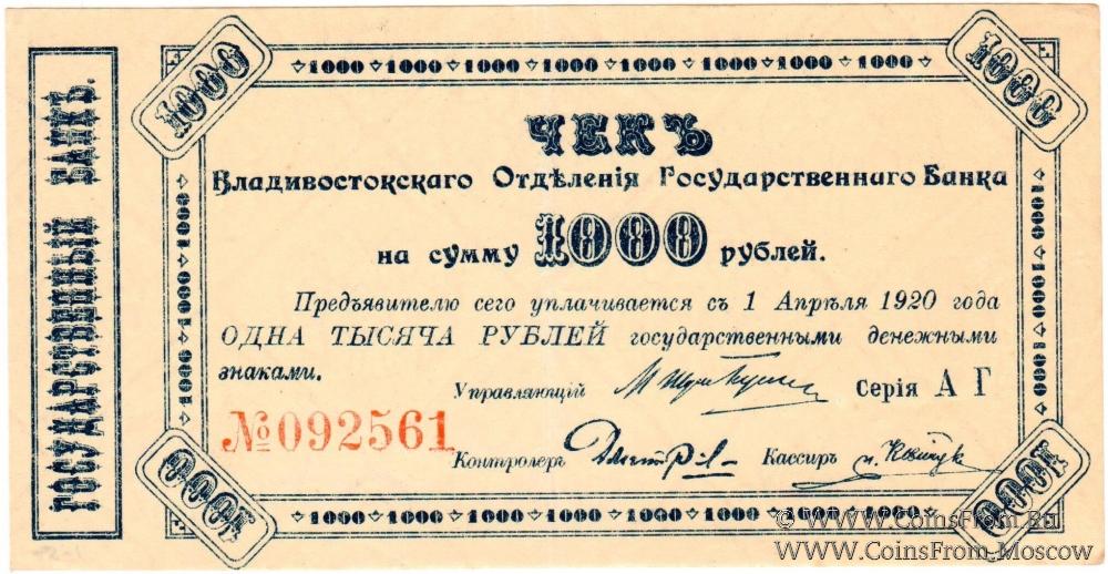 Чек. Водяной знак - сетчатка. Владивостокское Отделение Государственного Банка.