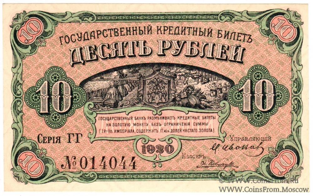 Государственные кредитные билеты (1, 5, 10 рублей) образца 1920 г.