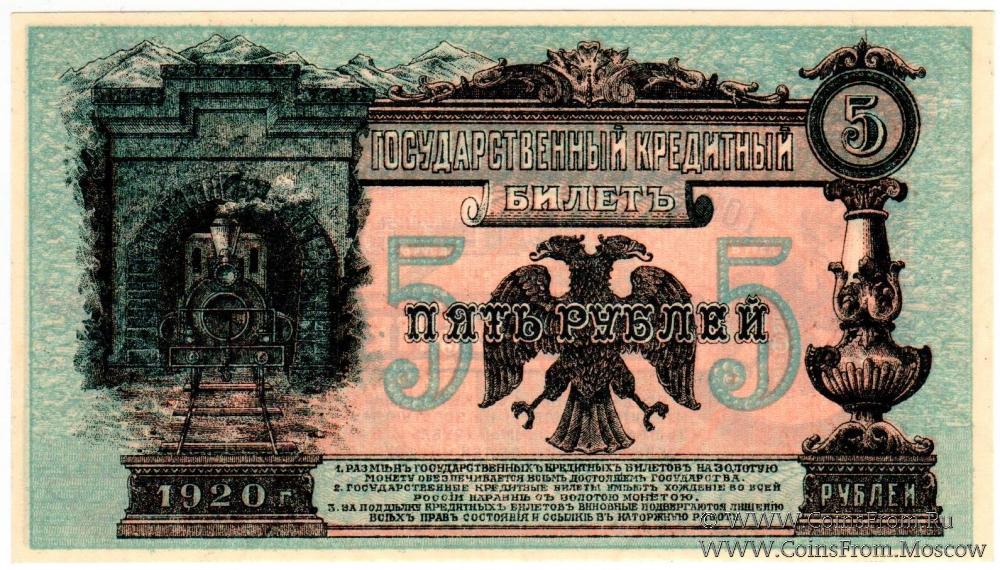 Государственные кредитные билеты (1, 5, 10 рублей) образца 1920 г.