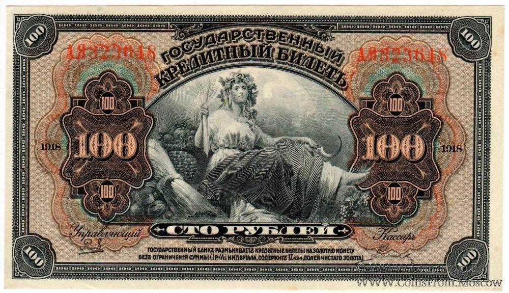 Государственный Кредитный билет 1918 (с подписями на аверсе Иванов-Ковнацкий - 1920). Подписи черные на аверсе и реверсе. Кассир - Васильев А. Государственный Банк.