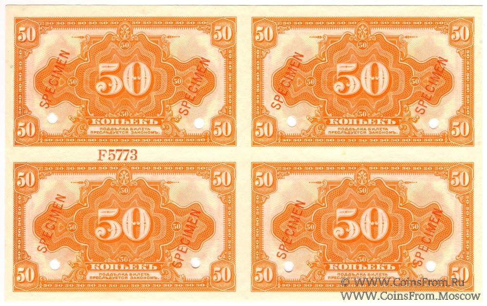 ОБРАЗЕЦ двусторонний (№ F5773): диагональная надпечатка красного цвета "SPECIMEN" (шрифт крупный) в двух местах на реверсе, двойная перфорация. Квартблок.