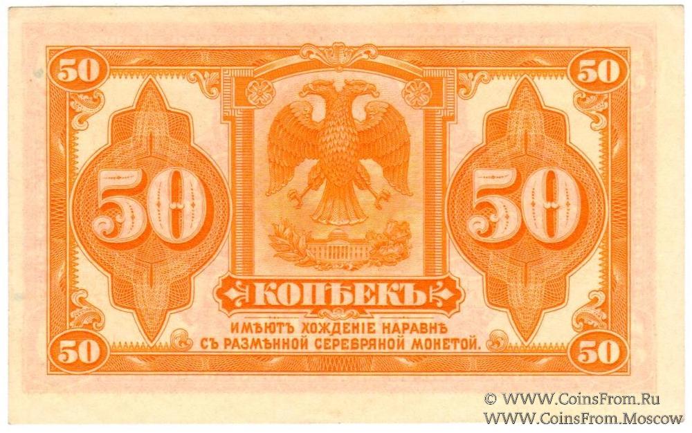 Билет американского изготовления без подписей, без номера, без даты (1917 г.). Бумага без водяных знаков.