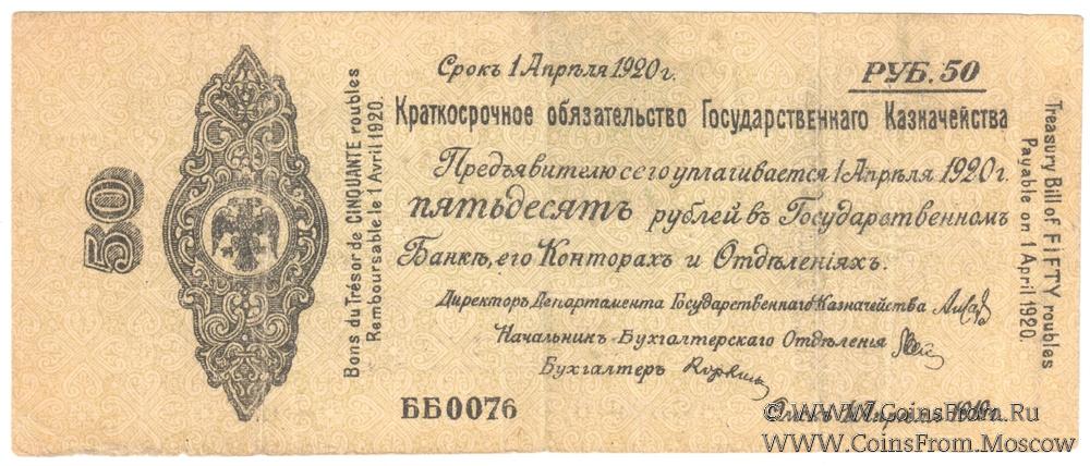 Выпуск 1 апреля 1919 г. Серия ББ. Жёлтый оттенок. 5% Краткосрочные Обязательства Государственного Казначейства.