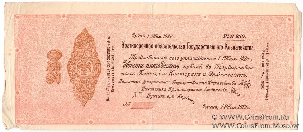 Выпуск 1 мая 1919 г. Бланк с полями (ПРОБА печати!?). Серия ДЛ. Без номера. 5% Краткосрочные Обязательства Государственного Казначейства.