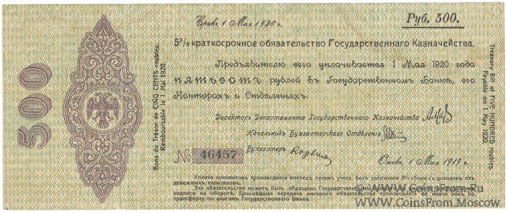 Выпуск 1 мая 1919 г. Без серии. 5% Краткосрочные Обязательства Государственного Казначейства.