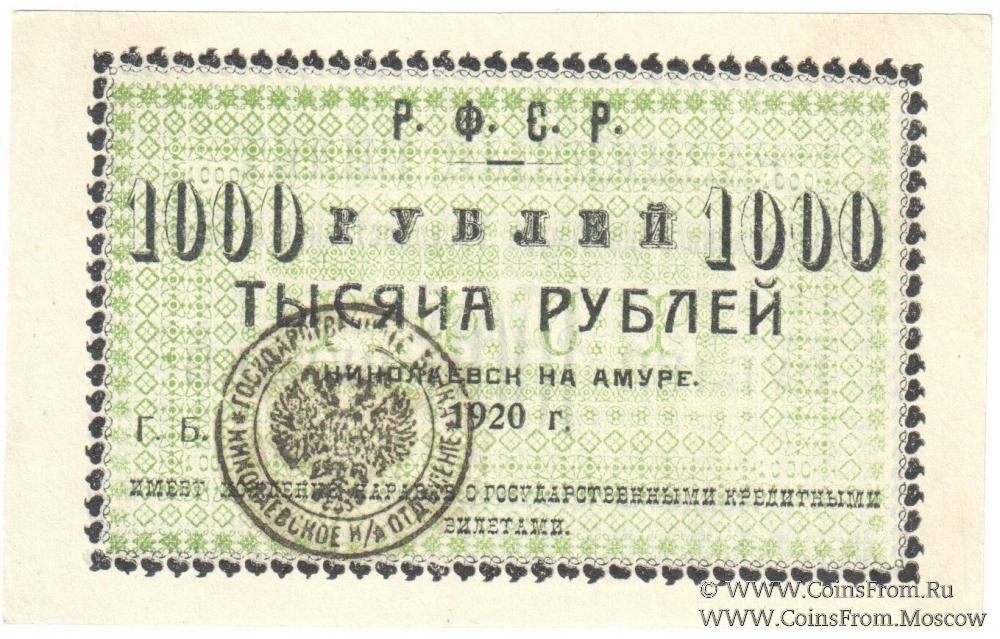 1.000 рублей 1920 г. (Николаевск на Амуре)