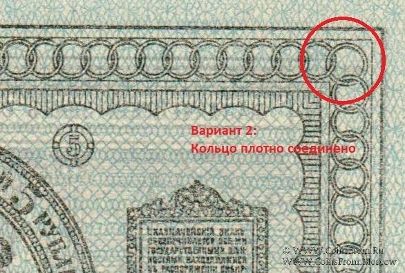 Аверс: без точки в номере. Реверс: кольца плотно (вариант 2). Элементы водяного знака.