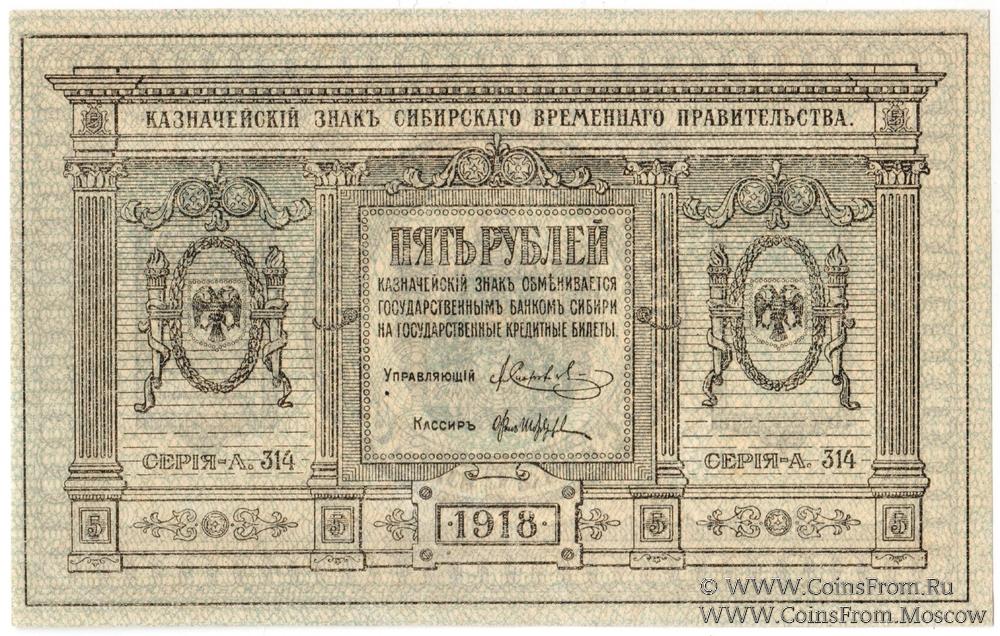 Казначейский знак Сибирского Временного Правительства 1918 г.
