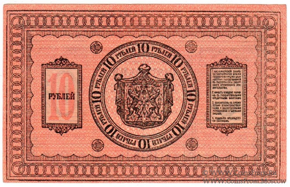 Бумага тонкая. Бледно-розовый фон аверса. Казначейский знак Сибирского Временного Правительства 1918 г. Государственный Банк Сибири.