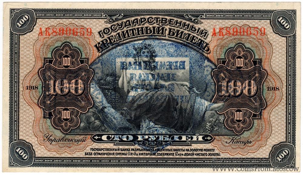 Билеты американского изготовления с надпечаткой произведенной Иркутской ЭЗГБ: на билетах в 100 рублей наложен гриф "Временная Земская Власть Прибайкалья" синей краской.