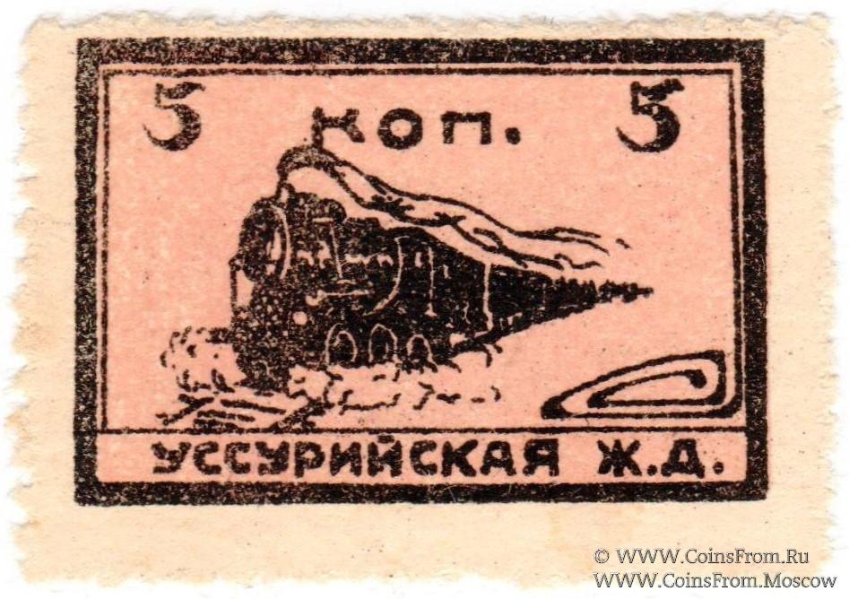Марки-деньги без даты 1920 г. Уссурийская железная дорога.