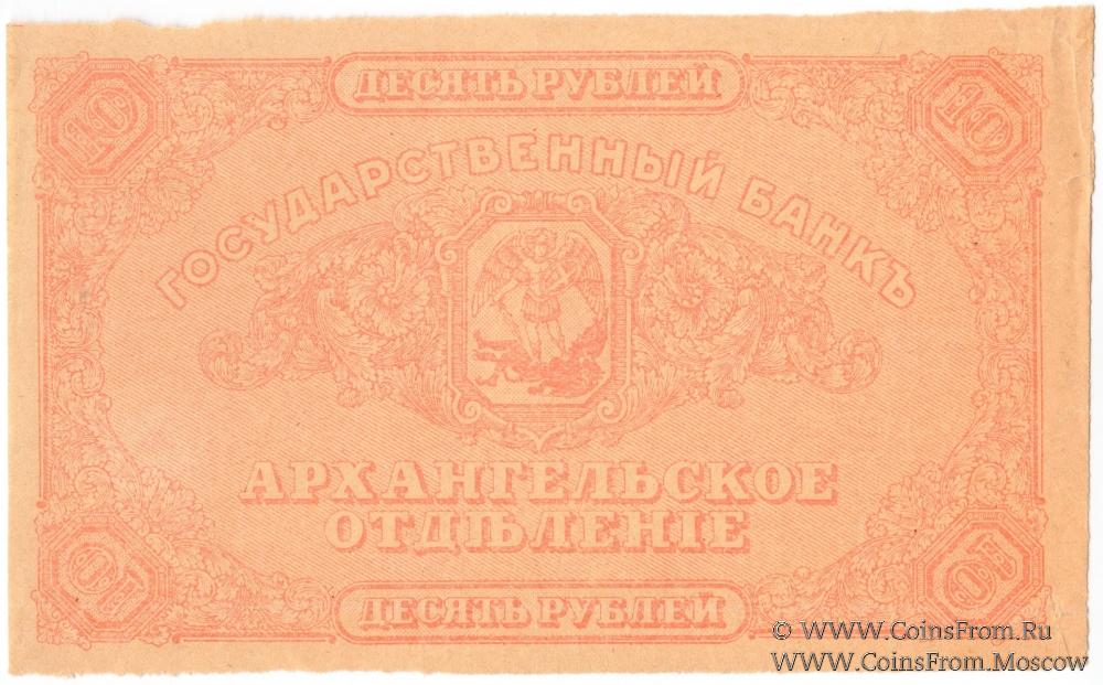 Чек без даты (1918 г.), без номера. БРАК: только реверс без текста, бумага желтая. Архангельское Отделение Государственного Банка.