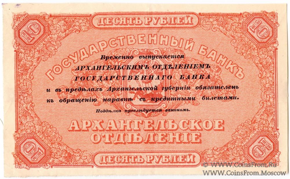 Чек без даты (1918 г.), без номера. БРАК: только реверс с текстом, бумага белая. Архангельское Отделение Государственного Банка.
