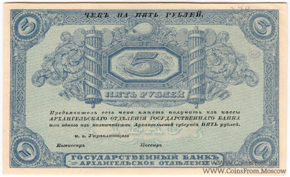 Чек без даты (1918 г.). Без номера. БРАК: без подписей на аверсе. Синий оттенок. Архангельское Отделение Государственного Банка.