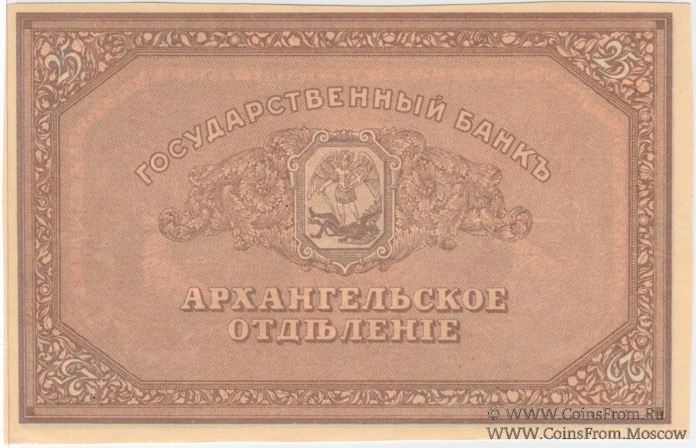 Чек 1918 г. (без даты), без номера. Бумага желтая. БРАК: без текста, подписей на аверсе и реверсе. Архангельское Отделение Государственного Банка.