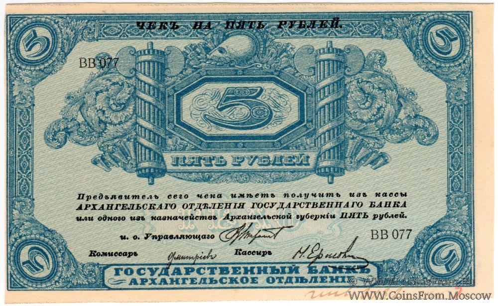 Чек 1918 г. (без даты). Серия - две литеры. Архангельское Отделение Государственного Банка.