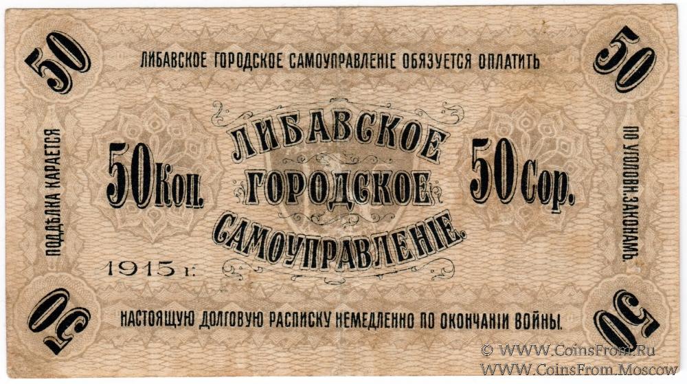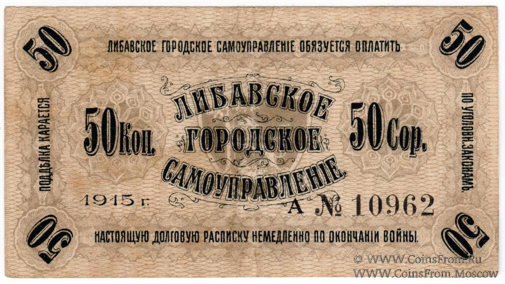 Серия А. Номер 5-значный 4,5 мм. Фрагмены водяного знака. Долговая расписка 1915 г. Фон серо-коричневый. Либавское Городское Самоуправление.