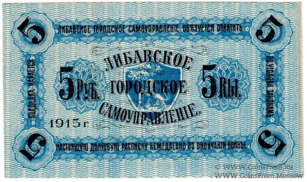 БРАК: двойная печать текста на аверсе. Без номера. Без серии. Долговая расписка 1915 г. Фрагменты водяного знака. Либавское Городское Самоуправление.