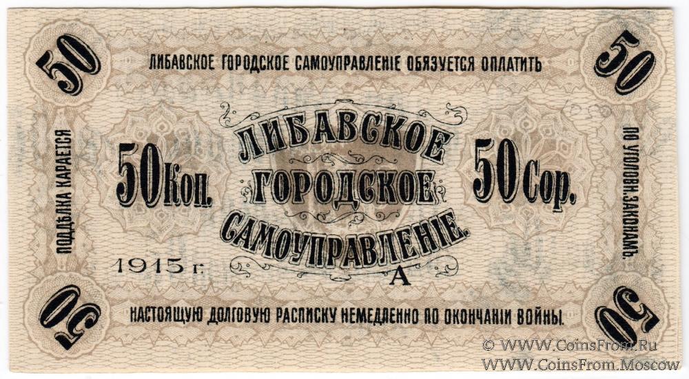 Серия А. Без номера. Фрагменты водяного знака. Долговая расписка 1915 г. Фон серо-коричневый. Либавское Городское Самоуправление.