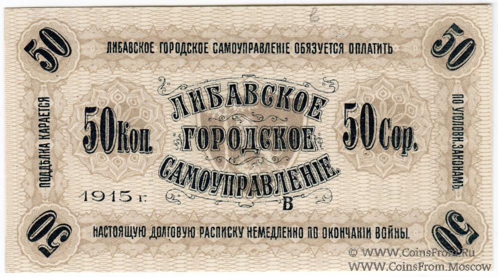 Серия В. Без номера. Фрагменты водяного знака. Долговая расписка 1915 г. Фон серо-коричневый. Либавское Городское Самоуправление.