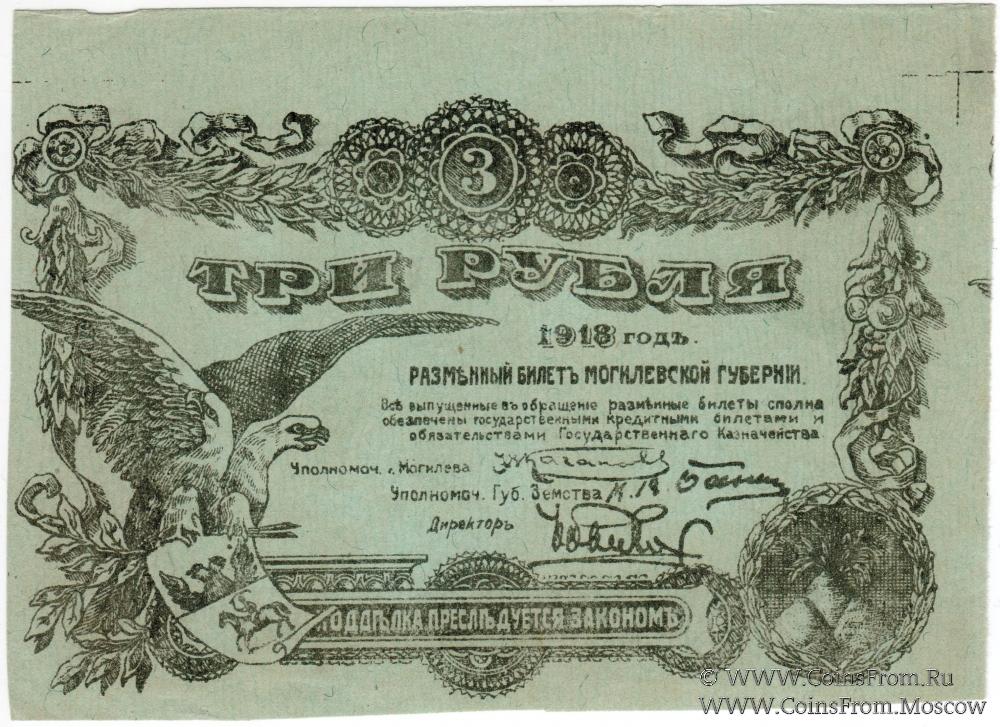 Разменный билет Могилевской губернии 1918 г. БРАК обрезки: сдвиг рисунка, фрагменты другой банкноты на поле. Без номера. Губернская управа.