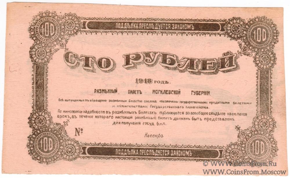 БРАК: сдвиг рисунка. Бланк (без номера, без подписей). Разменный билет Могилевской губернии 1918 г. Губернская управа.