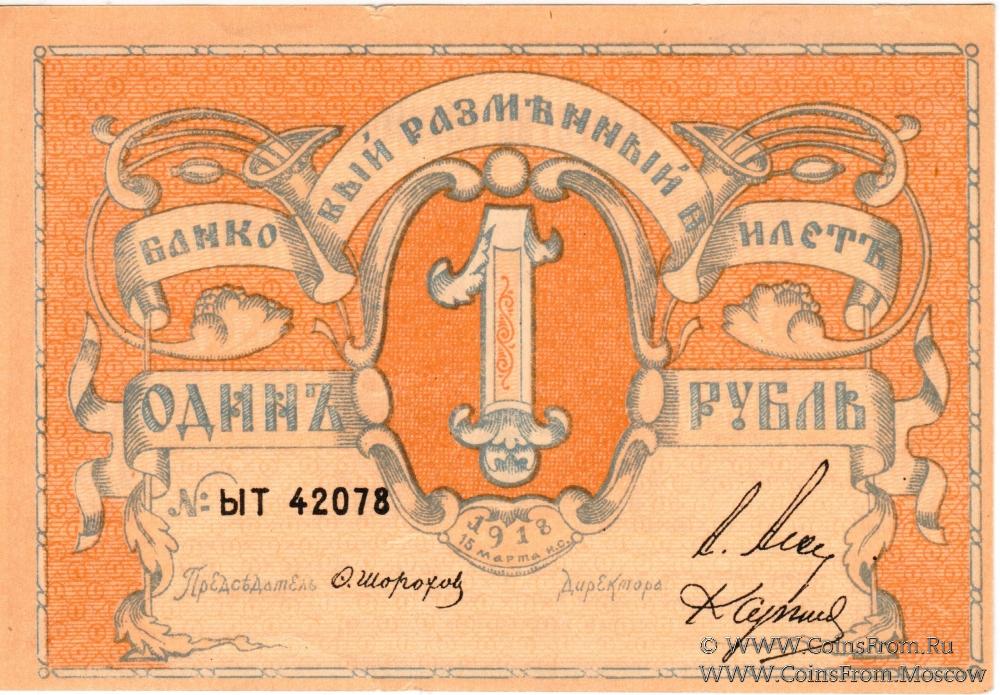 Банковый разменный билет 1918 г. Псковское Общество Взаимного Кредита.