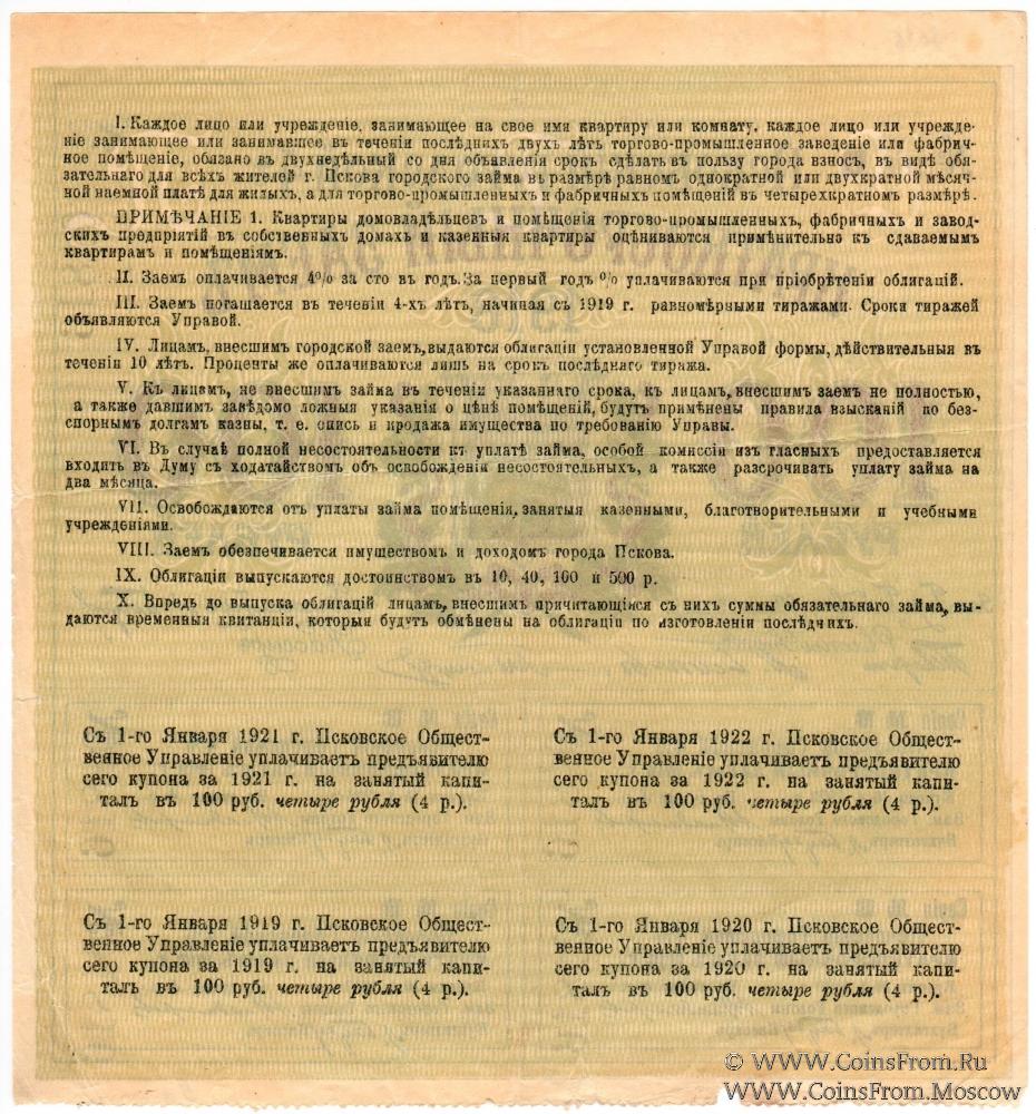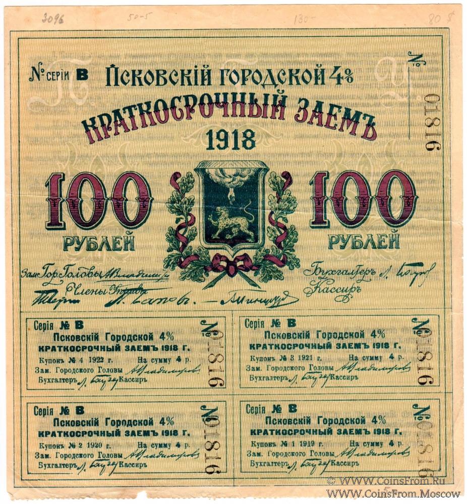 Серия В. Псковский городской 4% краткосрочный заем.