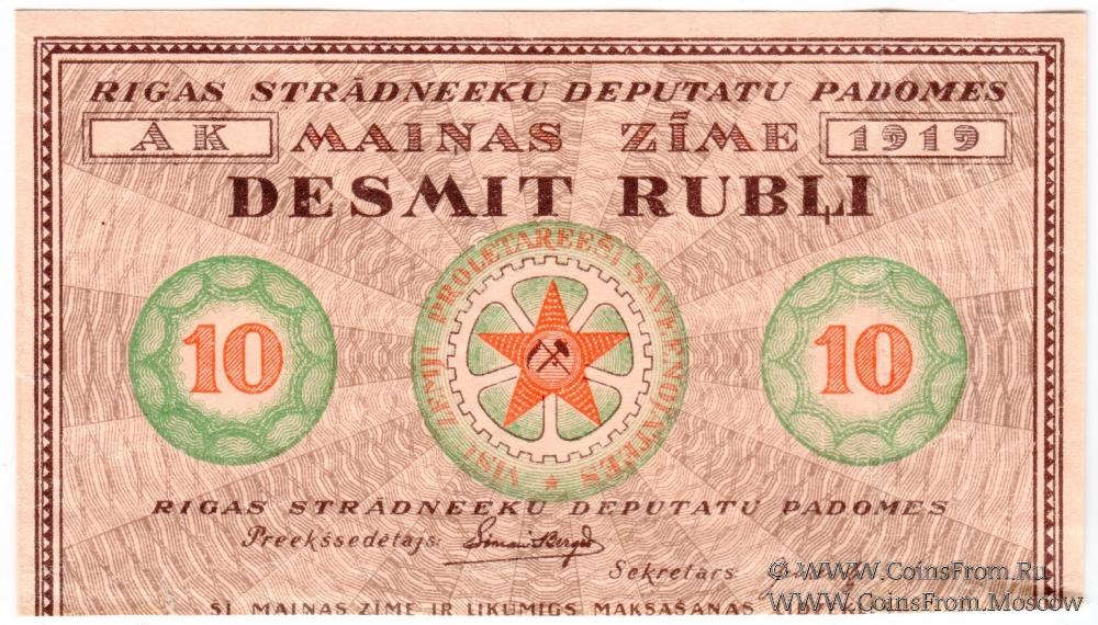 Выпуск 1919 г. БРАК: реверс отсутствует (только аверс). Рижский Совет рабочих депутатов (Rigas Strādneeku Deputatu Padomes).