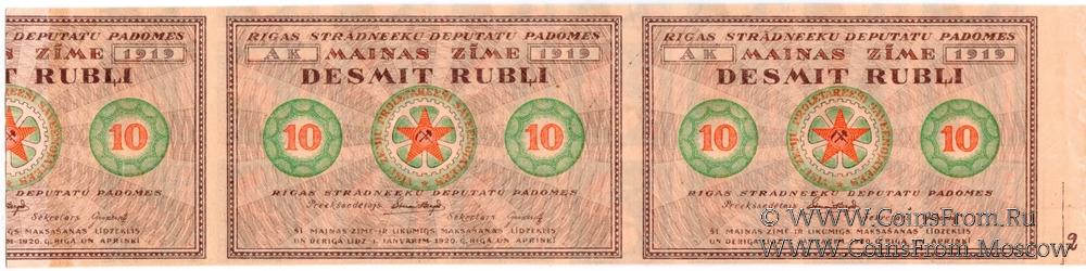 10 рублей 1919 г. (Рига) СЦЕПКА БРАК