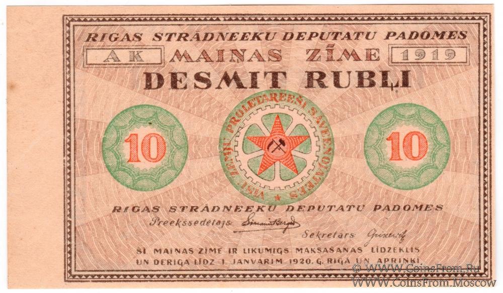 Выпуск 1919 г. БРАК обрезки (край листа слева). Рижский Совет рабочих депутатов (Rigas Strādneeku Deputatu Padomes).