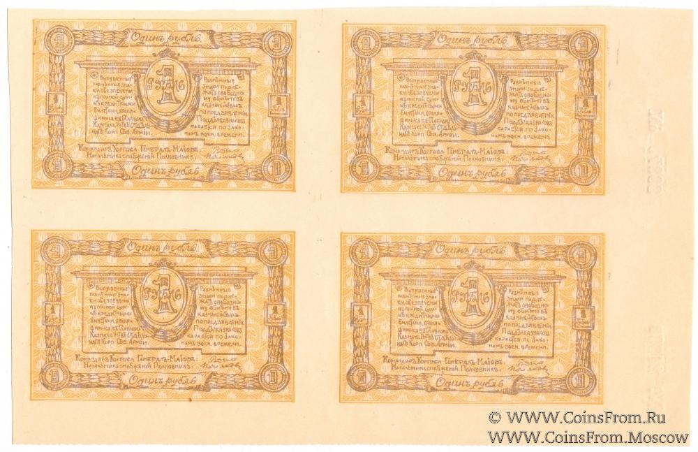 Разменный знак без даты (1919 г.). Квартблок. №№ 000294, 000295, 000299, 000300.