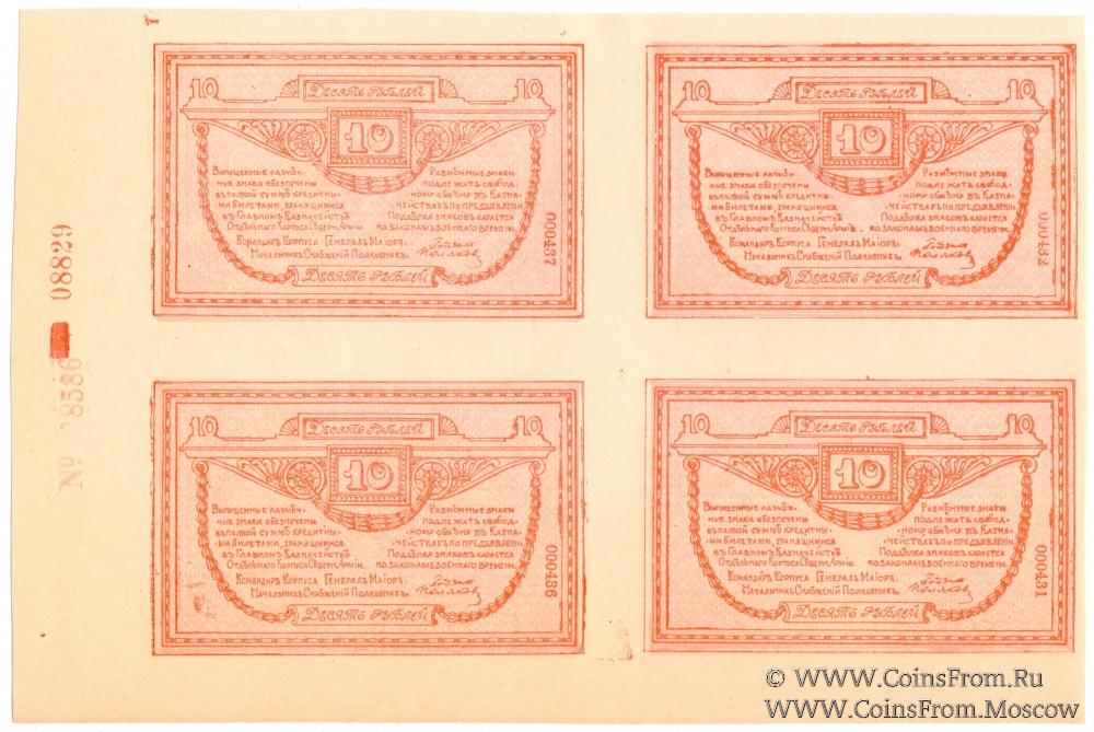 Разменный знак без даты (1919 г.). Квартблок. №№ 000431, 000432, 000436, 000437.