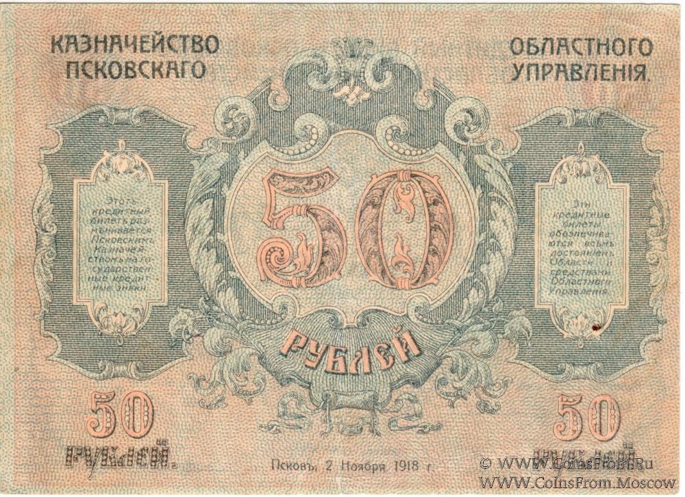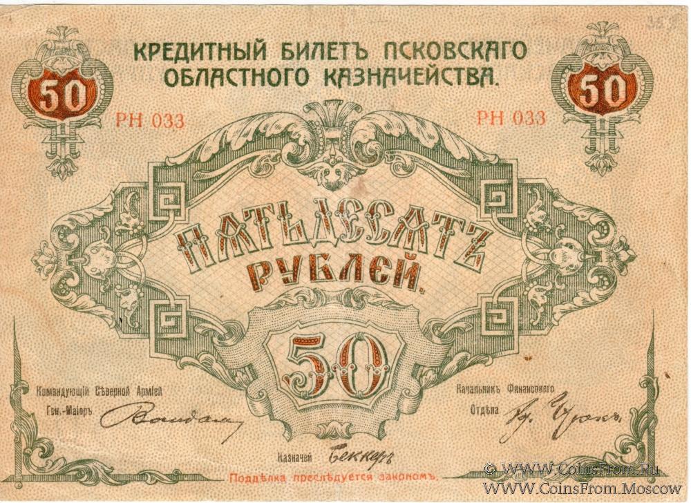 Кредитный билет Псковского Областного Казначейства 1918 г.